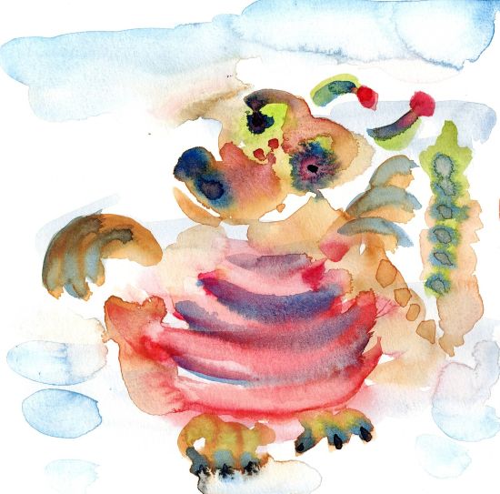 Drache 2, Tanzdrache, 2025, Aquarell auf Papier, 19 cm x 19 cm